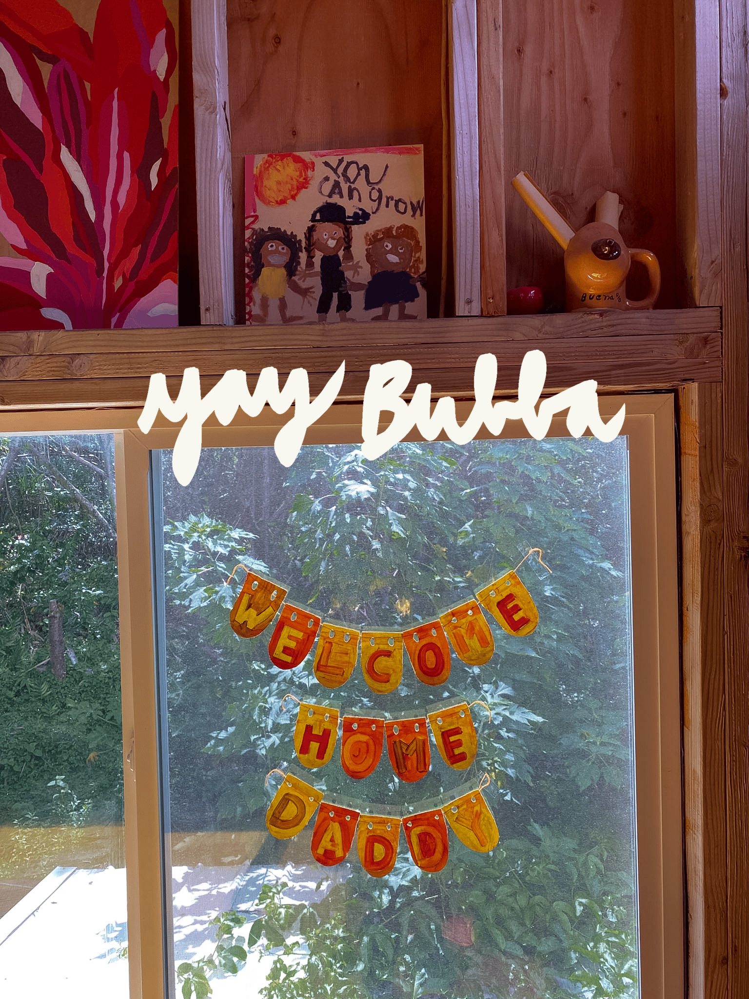 Bubba returned from his work trip! I love being able to show Sweet Pea that we're a powerful, capable, persevering duo who can live this off grid, construction filled lifestyle on our own, have a blast, and thrive - we totally did! AND it's really amazing to have Bubba back. He is so comforting, supportive, steady, and strong. We couldn't possibly adore or appreciate him more. Welcome home, Daddy! We love you - BIG TIME!