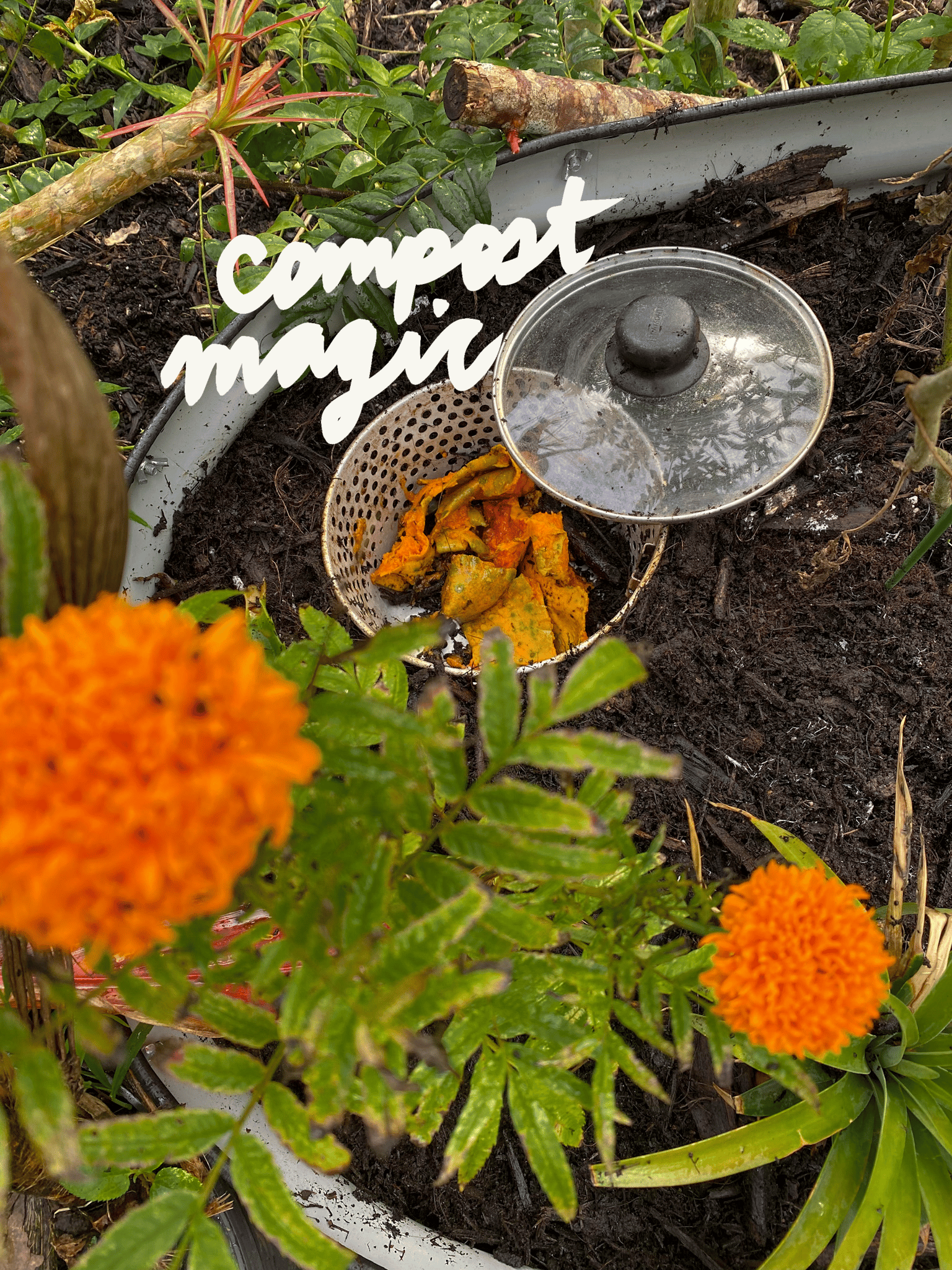 In honor of the garden, we wanted to share one of our ongoing projects. Our in ground compost experiment. Sweet Pea, being the scientist she is, has been making observations through the glass lid. Documenting stages of decomposition, worm activity, and noting it down in her field notes. Swoon!