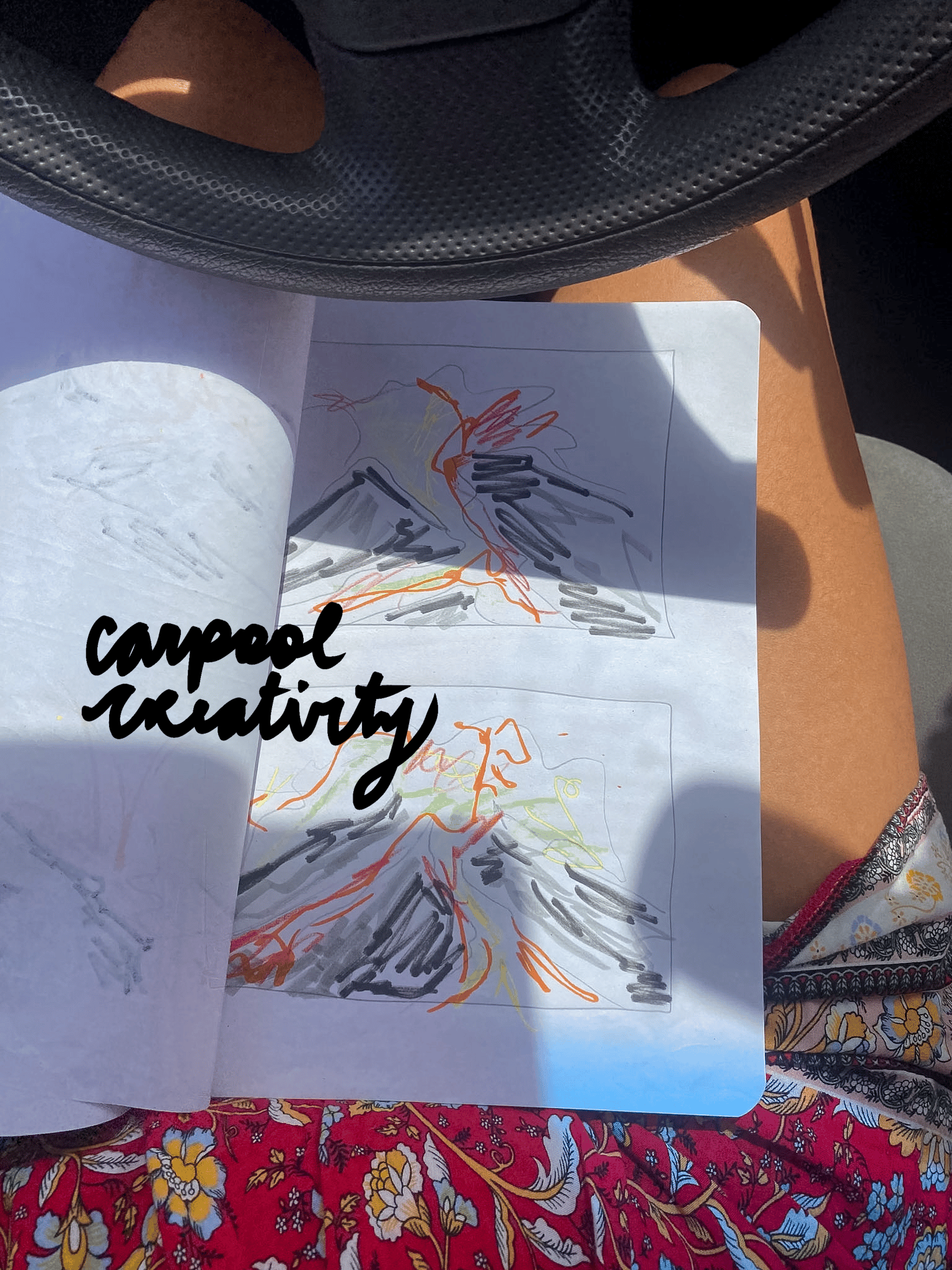 Ideas for new pieces have been flowing through me. This was a two minute carpool pickup rushed sketch for Spicy, what I thought would be my next piece. The idea felt so ready. Jagged and colorful, dark and light, pain and pleasure. Then the storm came in.