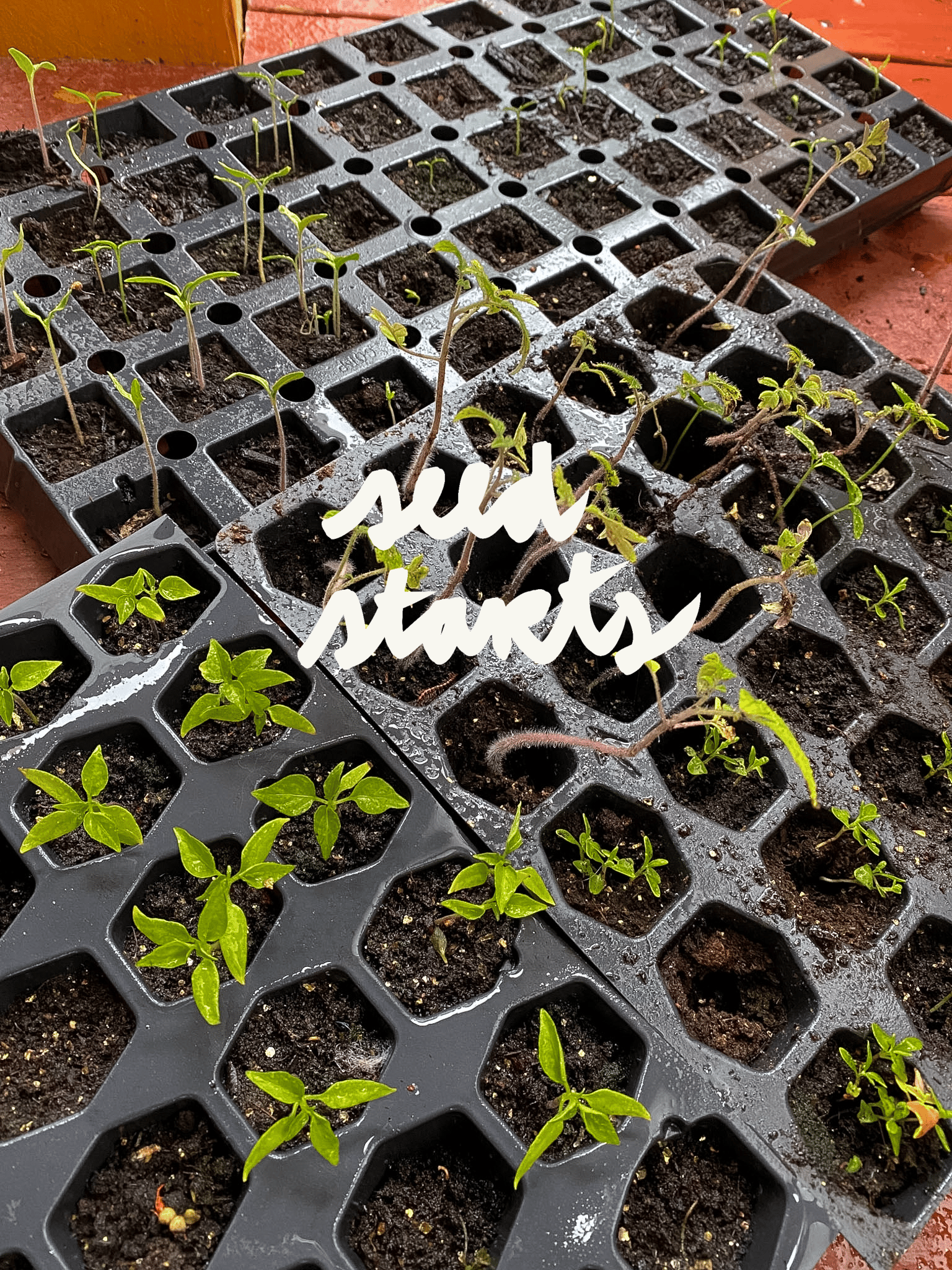 Along with seed saving, we've also started seedlings. Tomatoes, peppers, cilantro, and a few mysteries too. Sweet Pea has been showing more interest in the garden lately, especially when it comes to seeds, so we're leaning into it! I don't have a clear plan for what to do with them once they need to be transferred, but as they grow, so will our ideas.