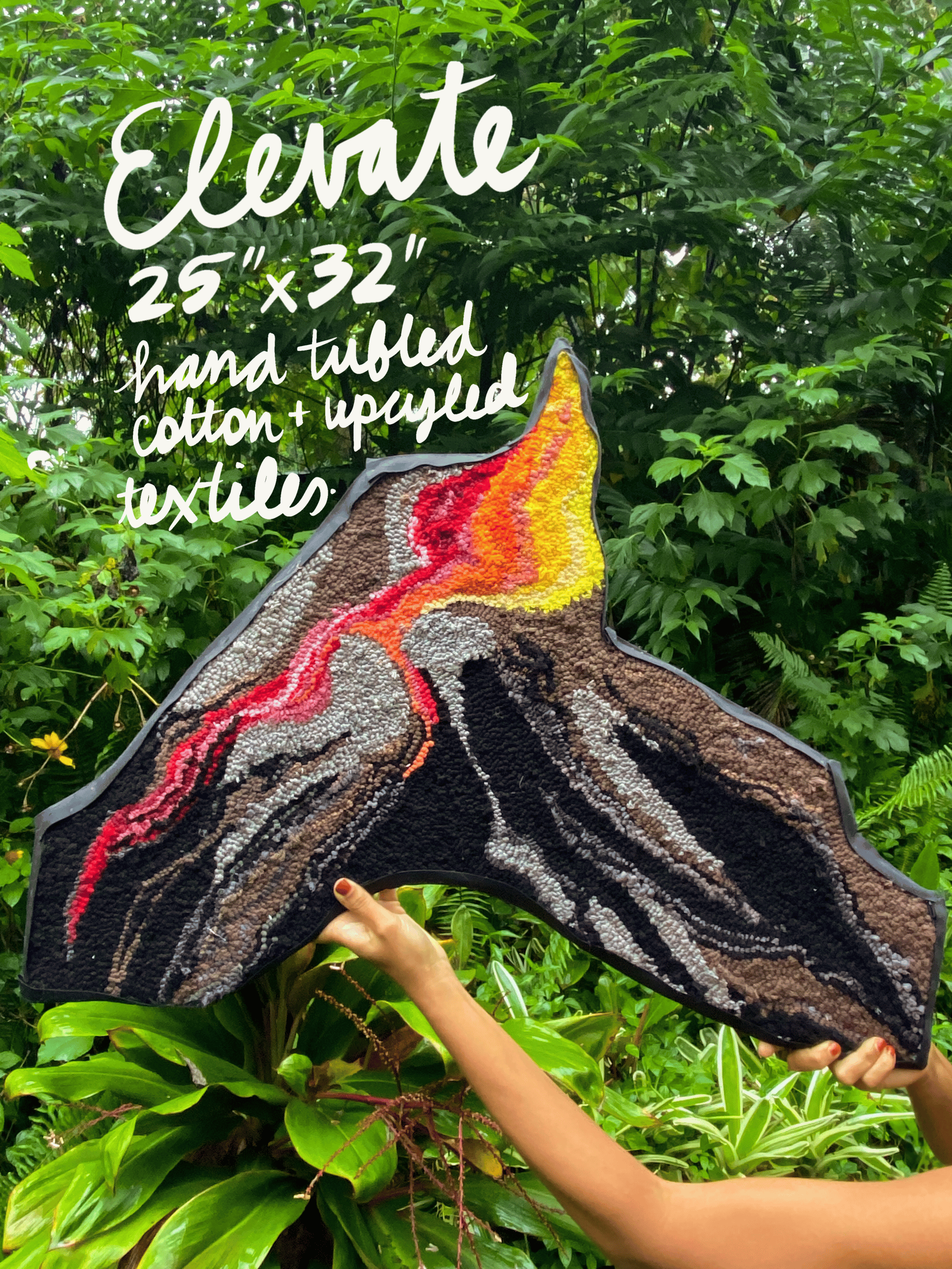 Elevate 25”x32”, hand tufted cotton yarn + upcycled textiles.