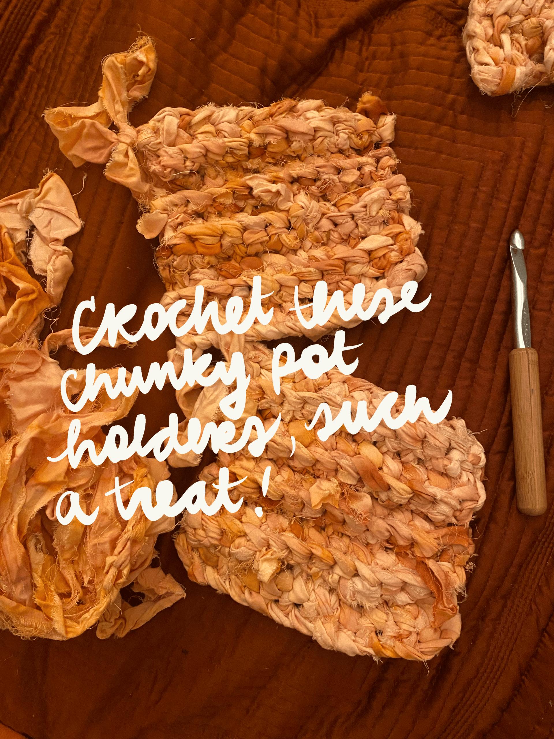 For crafts I crochet these chunky pot holders. I love projects that are a delight to make, are useful, and age beautifully. This project checked off all three!